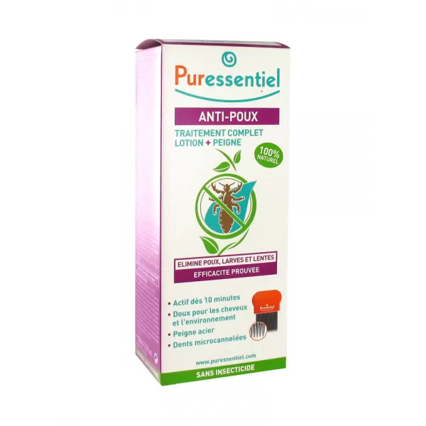 Užití: Puressentiel Anti-Poux zcela bezpečně likviduje vši, larvy i hnidy. Jeho 100% přírodní složení bez neurotoxických insekticidů obsahuje: RO – Oleje rostlinného původu (kokos, calophyllum, jojoba, slunečnice, sladké mandle, skočec) které působí mechanicky, jelikož ucpávají dýchací otvory vší, larev i hnid. Proti mechanismu fyzického dušení si vši nemohou vybudovat rezistenci. EO – Esenciální oleje (levandule, hřebíček, tea tree, kakost) působí hojivým a antiseptickým efektem, což je ideální na podrážděnou a svědící vlasovou pokožku.