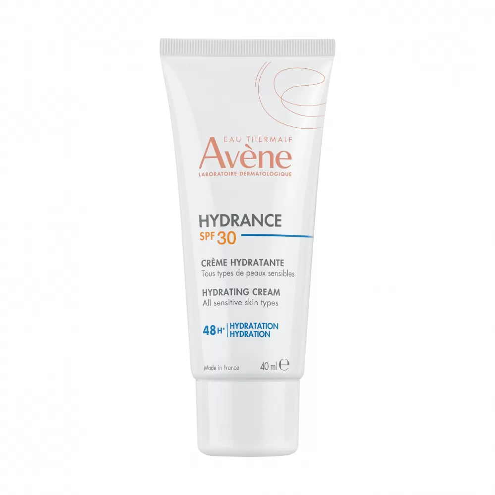 Avène Hydrance poskytuje hydratační péči, která se přizpůsobuje aktuálním potřebám pleti a udržuje její komfort v každém ročním období. Spojením kyseliny hyaluronové a polysacharidů z Aloe vera zajišťuje až 48hodinovou hydrataci, pomáhá zlepšit elasticitu a navrací pleti svěží vzhled už po prvním dni používání. Součástí složení je i patentovaný filtr TriAsorB™, který poskytuje širokospektrální ochranu proti UVB, UVA i modrému světlu (HEV) a pomáhá tak předcházet fotostárnutí. Lehce parfémovaný krém má univerzální texturu: napůl výživnou, napůl lehkou – je nemastný, nelepivý a vhodný jako denní péče i pod make-up.