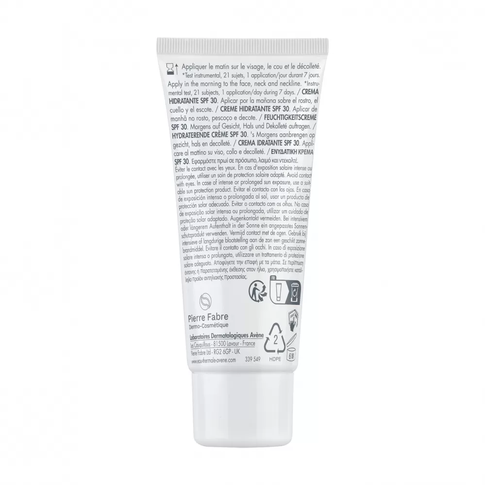 Avène Hydrance Hydratační krém SPF30 zajišťuje až 48hodinovou hydrataci, pomáhá zlepšit elasticitu a navrací pleti svěží vzhled už po prvním dni používání.