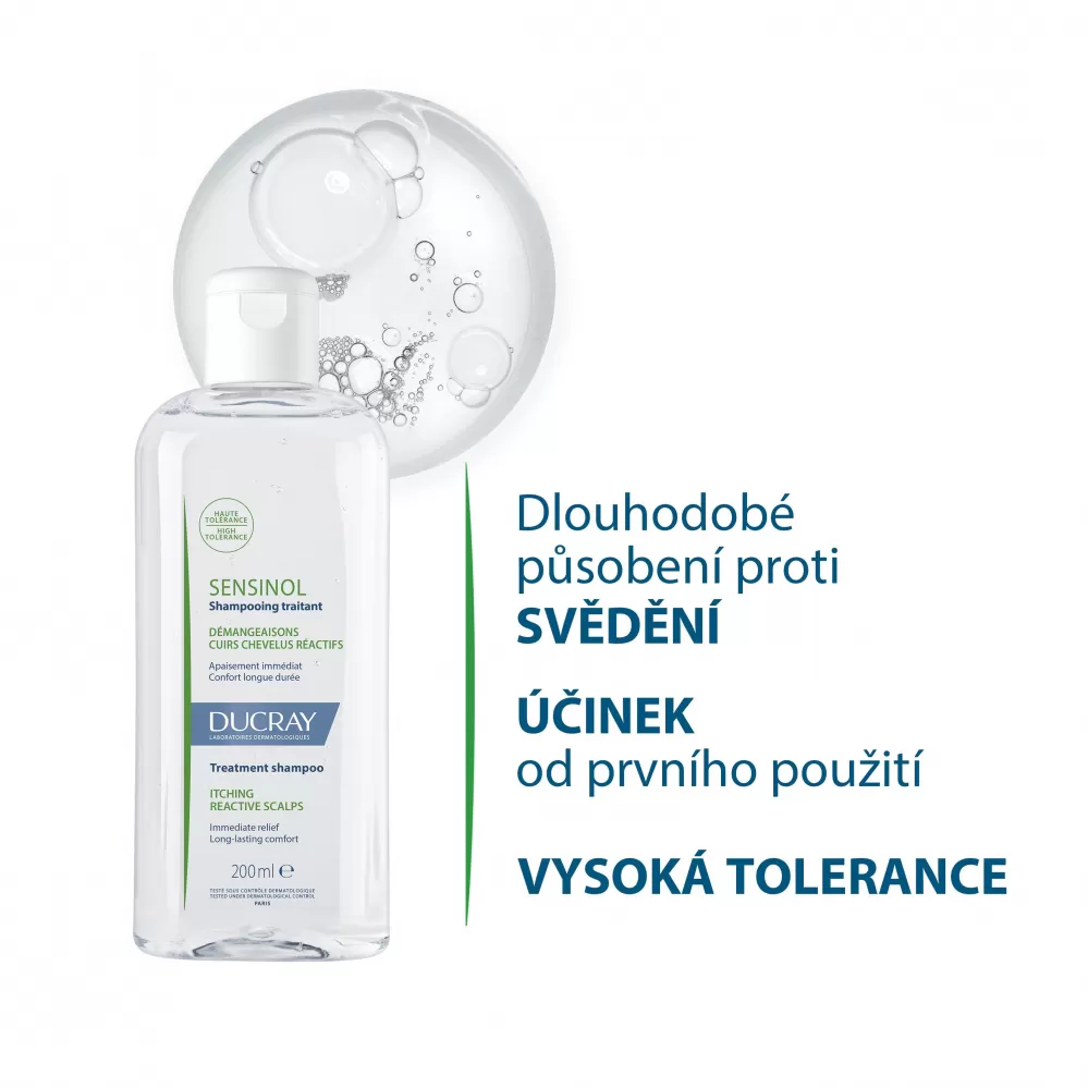 DUCRAY Sensinol je pečující šampon při svědění a podrážděné vlasové pokožceDlouhodobě zklidňuje svědění citlivé a podrážděné pokožky hlavy a zamezuje jeho opětovnému výskytu i po ukončení používání. Vhodný od 6 let, pro všechny typy vlasů.