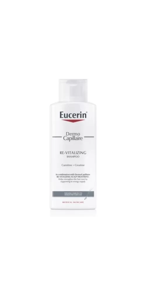 Eucerin DermoCapillaire Šampon proti vypadávání vlasů byl speciálně vyvinut, aby podpořil účinek Eucerin DermoCapillaire Tonika proti vypadávání vlasů. Jejich společné působení zpomaluje proces dědičně podmíněného vypadávání vlasů, nejčastější příčinu úbytku vlasů u mužů i žen. Obsahuje dvě účinné látky přirozeně se vyskytující v těle - karnitin a kreatin, díky nimž pomáhá posilovat vlasové kořínky. Při pravidelném používání účinně zpomalují řídnutí vlasů a dodávají vlasům zdravý lesk, hebkost a pružnost.