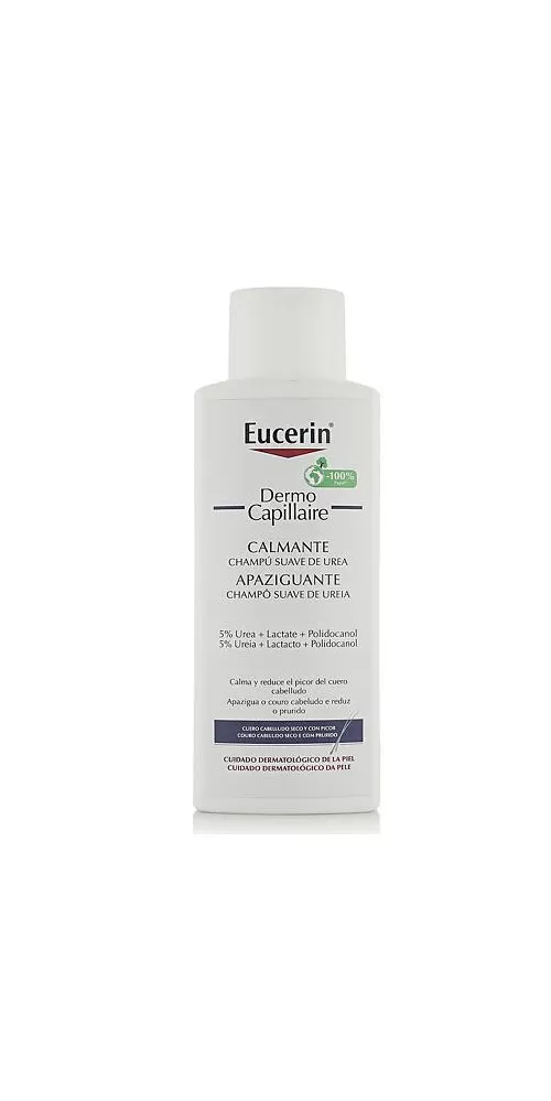 Eucerin DermoCapillaire Šampon na vlasy 5% UREA pro suchou pokožku byl vyvinut speciálně pro suchou a svědící pokožku hlavy. Je obohacen o ureu a kyselinu mléčnou –  hydratační faktory, které se přirozeně vyskytují u zdravé pokožky  –  aby poskytl suché, svědící pokožce vyživující péči, kterou potřebuje.