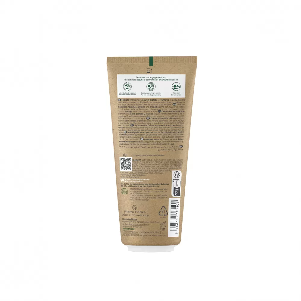 Hydratační krém s měsíčkem lékařským obohacený o přírodní aktivní látky, intenzivně hydratuje, chrání a posiluje dětskou pokožku. Klorane Bebe se zklidňujícím měsíčkem lékařským a hydratačním rostlinným glycerinem, který má BIO certifikát, se skládá z 99 % z přírodních složek, chrání a posiluje křehkou dětskou pokožku. Jeho složení testované pod pediatrickou kontrolou lze použít na obličej a tělo dítěte již od narození. Hydratační krém bohatý na přírodní látky přispívá k rovnováze kožního mikrobiomu dítěte a chrání jeho pokožku. Jeho lehká, nelepivá textura se rychle vstřebává a jeho 100% přírodní vůně jemně provoní dětskou pokožku. Vyživená a hydratovaná dětská pokožka zůstává nekonečně jemná a poskytuje dlouhodobě pocit pohodlí.