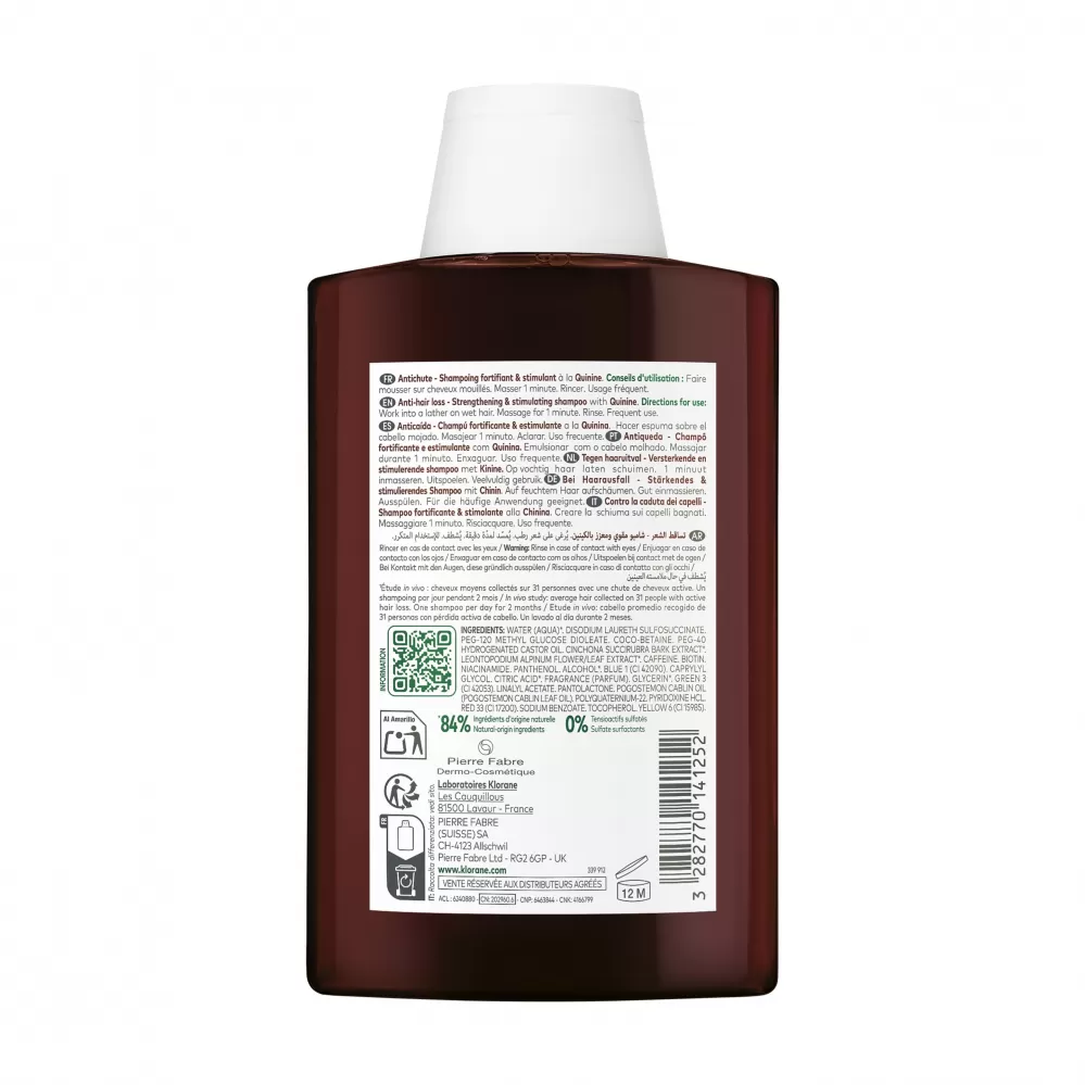 Šampon Klorane Chinin & Bio Protěž Alpská efektivně čistí pokožku hlavy, důkladně myje vlasy a navrací jim přirozenou krásu. Díky svému složení obohacenému o vitaminy skupiny B, výtažky z chininu a BIO protěže alpské čistí vlasy a zároveň pomáhá stimulovat jejich růst. Lze používat samostatně nebo jako doplněk k přípravkům proti vypadávání vlasů.