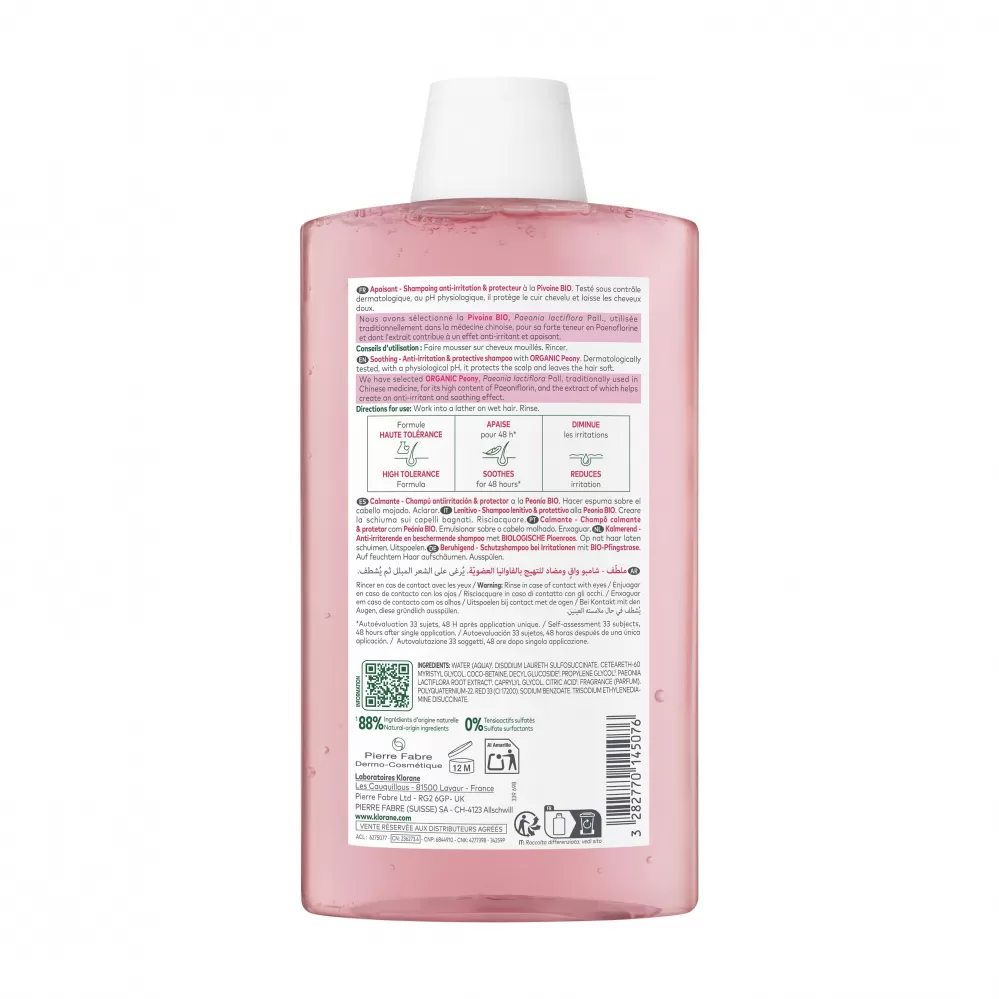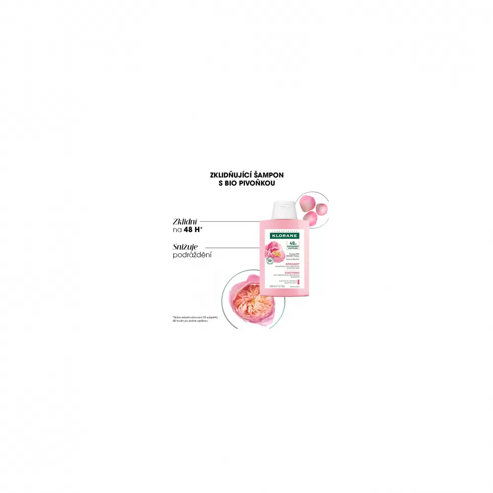 Zklidňující šampon Klorane s BIO pivoňkou nabízí citlivé vlasové pokožce okamžitý a 24 hodinový pocit zklidnění* a zároveň respektuje její rovnováhu. Tento šampon obsahuje 85% složek přírodního původu, je bioodbouratelný** a vegan***, svou sílu čerpá z BIO výtažku z pivoňky čínské pěstované v chráněném ekosystému, která se tradičně používá pro své zklidňující vlastnosti. Jeho složení s fyziologickým pH jemně myje a poskytuje dlouhotrvající ochranu vlasové pokožce, přičemž okamžitě zklidňuje pocit svědění. Vlasy jsou hebké a provoněné relaxační vůní. To vše ve 100% recyklovaném a recyklovatelném plastovém obalu bez krabičky. Šampon, který kombinuje účinnost a ekologický design pro zklidnění citlivé vlasové pokožky.