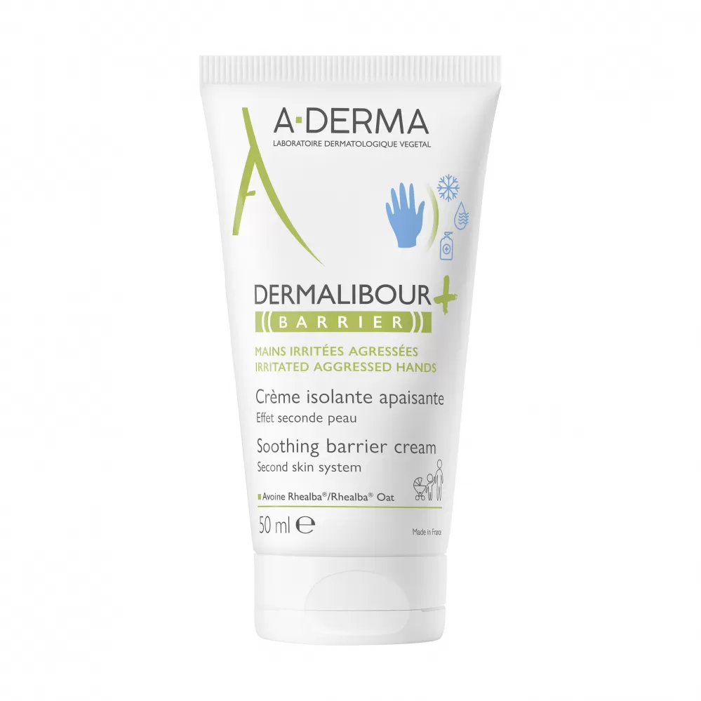 A-DERMA Dermalibour+ Barrier zklidňující ochranný krém pro podrážděnou a narušenou pokožku rukou.