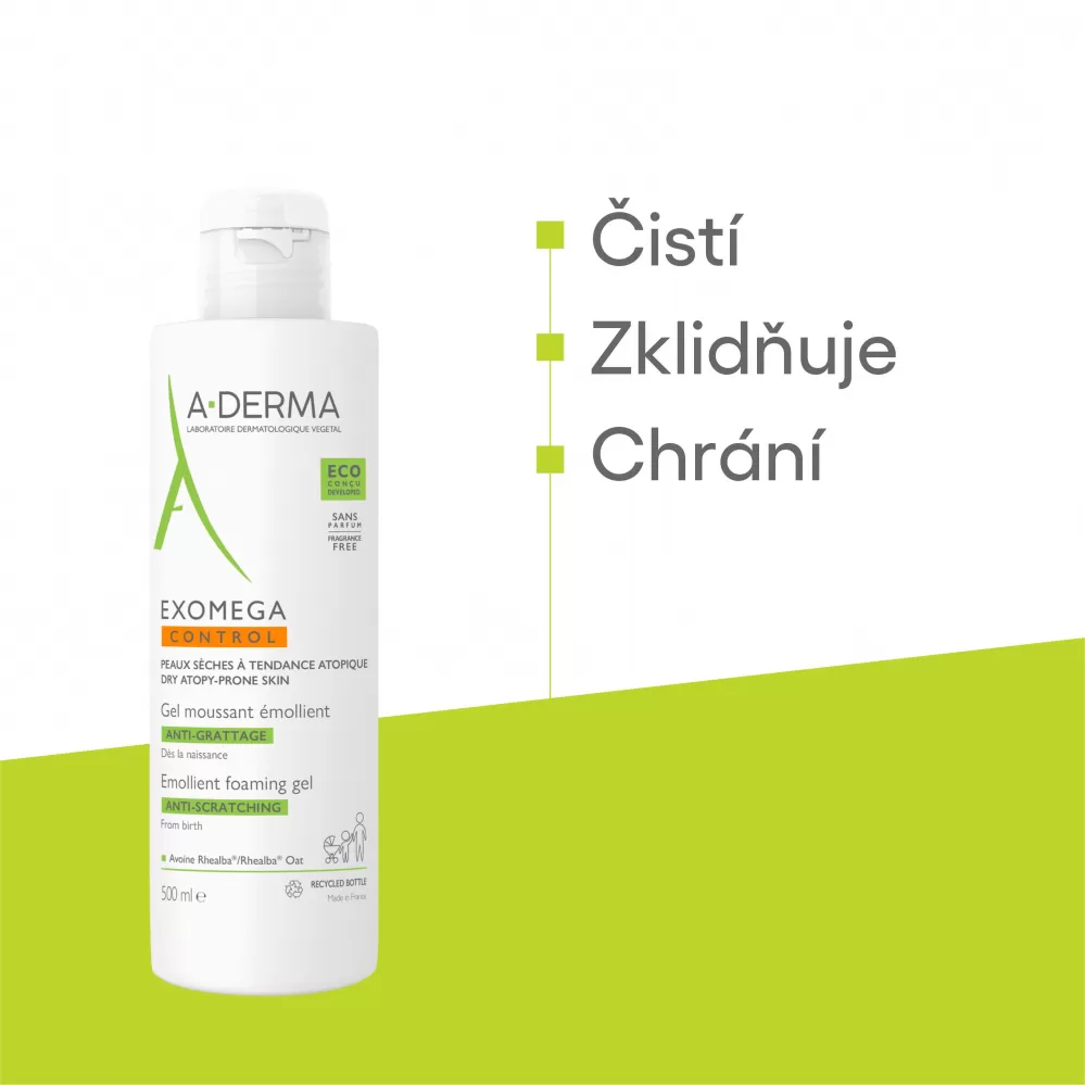 • Pěnivý gel A-DERMA Exomega Control je ideální pro každodenní použití