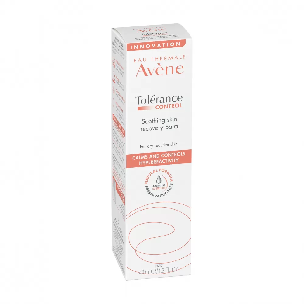 Díky ultra-zklidňující nové patentované** postbiotické aktivní látce D-Sensinose™ tato péče zmírňuje pocity horkosti, pnutí, brnění a celkový diskomfort pleti.. Tolérance CONTROL Zklidňující obnovující balzám Sterilní kosmetika® pro přecitlivělou, reaktivní, intolerantní nebo alergickou pokožku zklidní pleť do 30 sekund*. Pleť je intenzivně hydratovaná a její ochranná bariéra obnovená do 48 hodin***. Jeho bohatá příjemná textura je doporučená zejména pro suchou až velmi suchou pleť. Sterilní kosmetika® s dokonale hermeticky uzavřeným ochranným obalem bez přístupu vzduchu chrání produkt po celou dobu jeho používání a zabraňují jeho kontaminaci. Přípravek s vysokou snášenlivostí, bez parfemace a konzervačních látek.