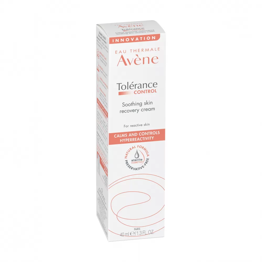Zklidňující krém Tolérance Control pro přecitlivělou, reaktivní, intolerantní nebo alergickou pleť zklidní pleť do 30 sekund*. Díky ultra-zklidňující nové patentované** postbiotické aktivní látce D-Sensinose™ tato péče zmírňuje pocity horkosti, pnutí, brnění a celkový diskomfort. Pleť je intenzivně hydratovaná a její ochranná bariéra obnovená do 48 hodin***. Sterilní kosmetika® s dokonale hermeticky uzavřeným ochranným obalem bez přístupu vzduchu chrání produkt po celou dobu jeho používání a zabraňuje jeho kontaminaci. Přípravek s vysokou snášenlivostí, bez parfemace a konzervačních látek.