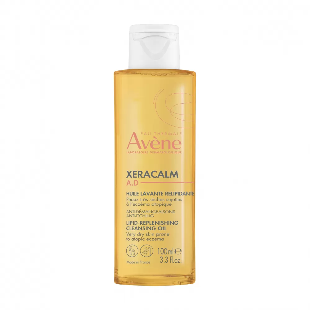 XeraCalm A.D Relipidační mycí olej jemně čistí a zklidňuje velmi suchou pokožku se sklonem k atopickému ekzému a svědění. Jako první krok v pravidelné péči proti svědění zanechává relipidační mycí olej pokožku jemnou a příjemnou a respektuje kožní mikrobiom. Relipidační mycí olej bez mýdla a s  fyziologickým pH lze používat při zhoršení pleti na obličeji, těle i u vlasové pokožky. XeraCalm A.D Relipidační mycí olej neobsahuje parfemaci a je vyvinut tak, aby minimalizoval riziko alergických reakcí, neštípe v očích a je ideální pro pokožku novorozenců, dětí i dospělých. Složení relipidačního mycího oleje bohaté na kombinaci aktivních látek: I-modulia® – první postbiotická aktivní látka získaná z termální vody Avène, zmírňuje svědění*, stimuluje obranyschopnost pokožky a působí proti podráždění; s Cer-omega komplexem kožních lipidů, které vyživují pokožku a obnovují kožní bariéru, a termální vodou Avène, která přirozeně zklidňuje, zjemňuje a působí proti podráždění. *Způsobené suchostí kůže