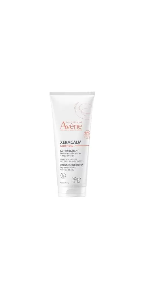 AVENE XeraCalm NUTRITION Hydratační mléko pro citlivou a suchou pokožku, vhodné pro celou rodinu, složené z 97 % ze složek přírodního původu.