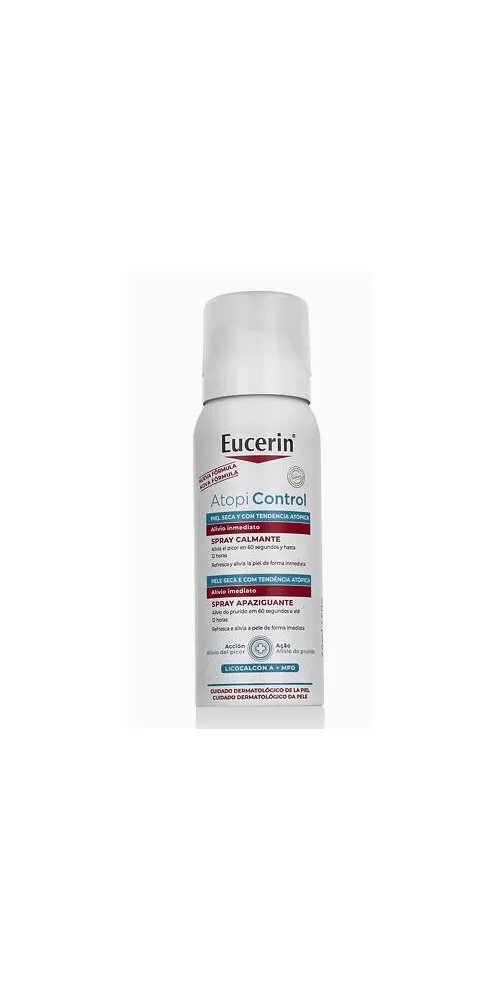 Eucerin AtopiControl Sprej proti svědění je ideální při svědění lokalizovaných oblastí pokožky těla, způsobeném atopickým ekzémem a lze jej používat jak během vzplanutí, tak v klidových fázích. Je praktický pro použití na cestách a také pro použití spolu s Eucerin AtopiControl Acute krémem a/nebo vašimi obvyklými léky.