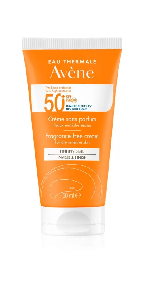 Avène Krém bez parfemace SPF 50+ zajišťuje velmi vysokou ochranu před slunečním zářením. Je vhodný pro suchou až velmi suchou citlivou pleť, zejména pro: